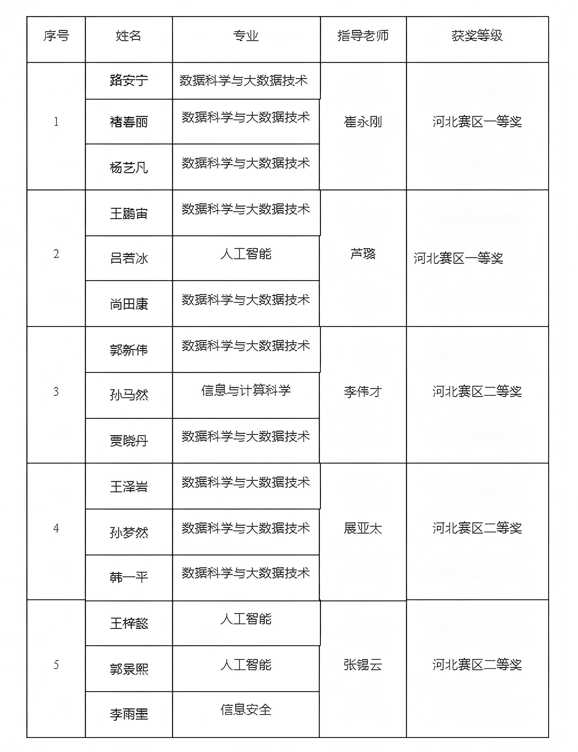 近日,2025年全国大学生数学建模竞赛河北赛区获奖名单揭晓,我院学生获河北赛区一等奖2项,二等奖2项,我校获奖数量和等级位居全省同类院校前列。