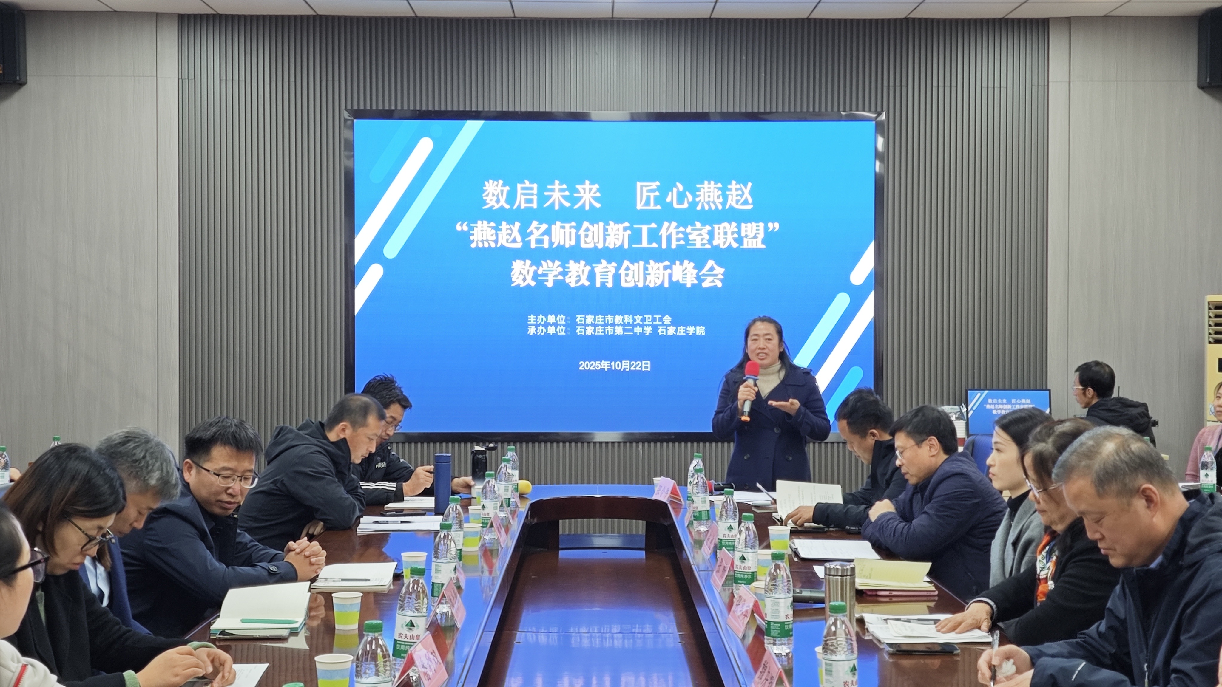 为助力我市中小学教育高质量发展,2025年10月22日,我校理学院承办石家庄市教科文卫工会“燕赵名师创新工作室联盟”开展“数启未来 匠心燕赵”数学教育创新峰会。来自全市19所中学的46名骨干教师参加本次会议,市教科文卫工会主席魏庆辉出席会议并讲话,我校工会、理学院领导班子出席会议。