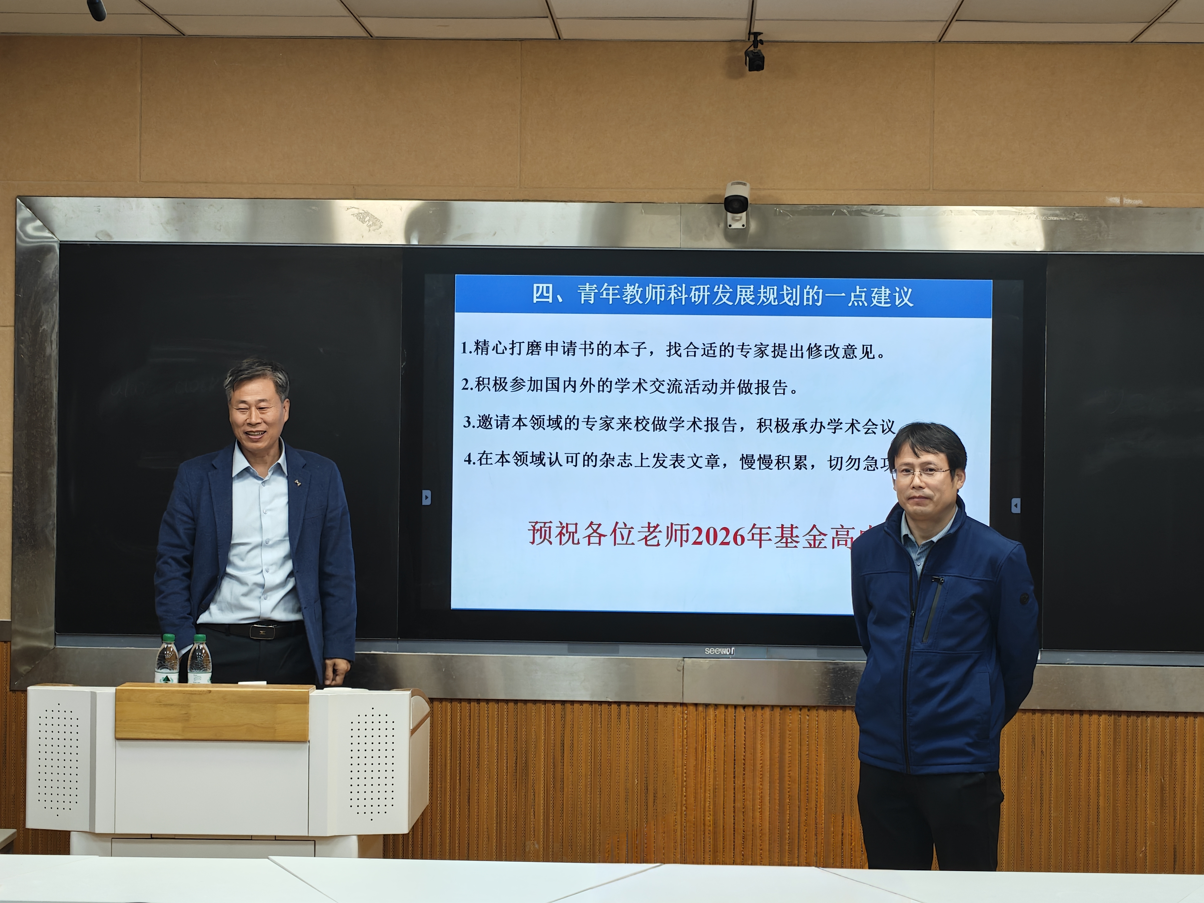 为做好2026年度我校国家自然科学基金和国家社科基金项目申报工作,有效提升项目申报质量和立项率,推进高水平应用型大学建设,10月27日,我校科研处、理学院共同邀请中国民航大学李双宝教授到我校指导国家基金项目并作“申报国家自然科学基金,经验分享与交流”的讲座。科研处负责人、理学院领导班子参加交流活动,学校教师代表30余人聆听了报告。