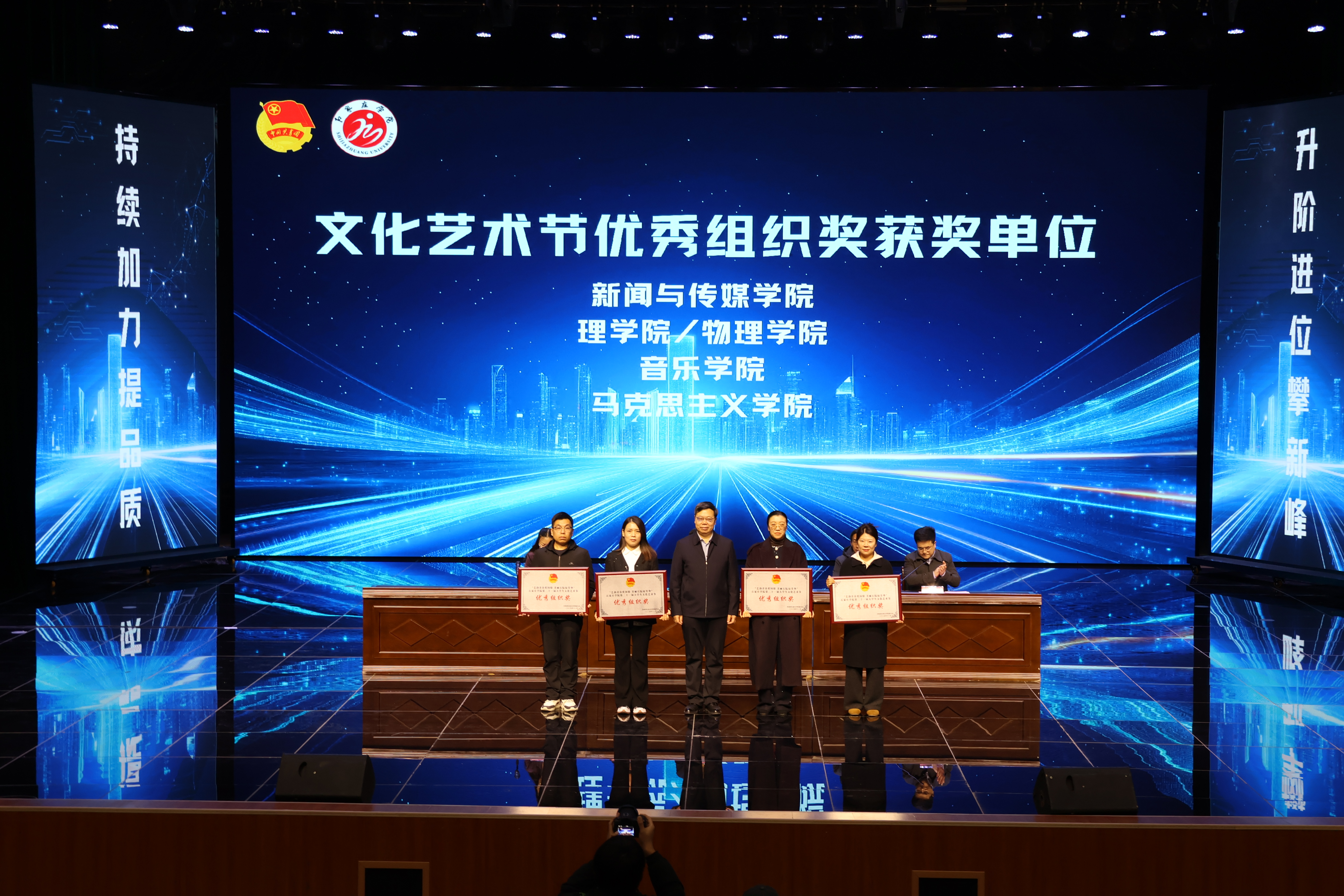 12月4日下午,我校在尚文礼堂召开“智汇青春 科创未来”第二十一届学术科技节启动暨新学年青年马克思主义者培养工程培训班开班仪式,对第二课堂成绩单制度、文化艺术节以及“挑战杯”竞赛中表现突出的单位进行表彰。理学院荣获“第二课堂成绩单制度”应用先进单位称号、文化艺术节优秀组织奖、“挑战杯”竞赛优秀组织奖。
