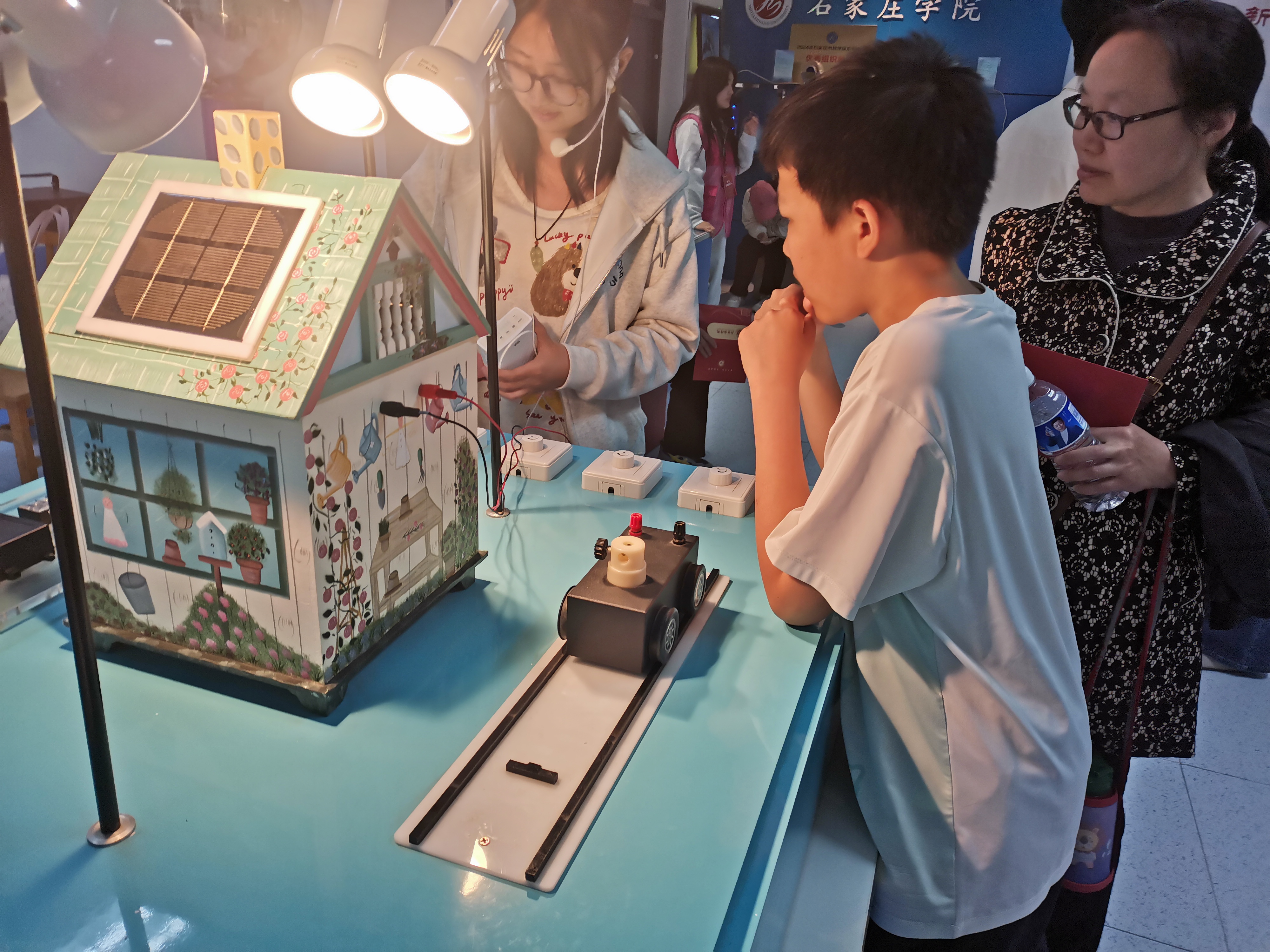在石家庄学院首届海棠节暨第三届校友返校活动期间,理学院数学探索科普基地、物理演示科普基地举办了以“海棠缀景,科趣满园”为主题的科普活动。凭借趣味十足的体验项目,前来参观的家长,中小学生和老校友人数众多。